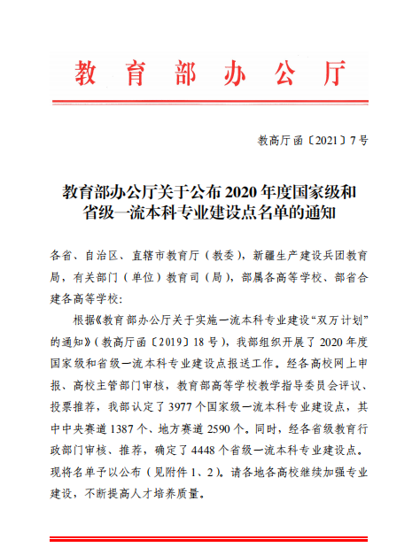近日,教育部办公厅印发《关于公布2020年度国家级和省级一流本科专业建设点名单的通知》(教高厅函〔2021〕7号),南京农业大学明星黑料