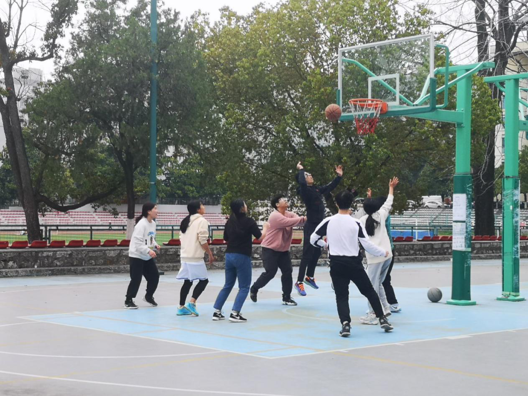 篮球趣味赛于3月18日下午举行。比赛赛程分为两轮,采用半场淘汰赛制,第一、三节为男生4V4,第二节为女生3V3,第四节为男女混合4V4,最终角逐冠亚军。为了增添比赛的趣味性,第三节设置限制措施,如运球不超过三次、不能进入禁区、只能上篮三选一以限制对方强点,以及第二节女生得分翻倍。比赛中同学们在场上积极拼抢、默契配合,场下观众呐喊声和欢呼声此起彼伏。
