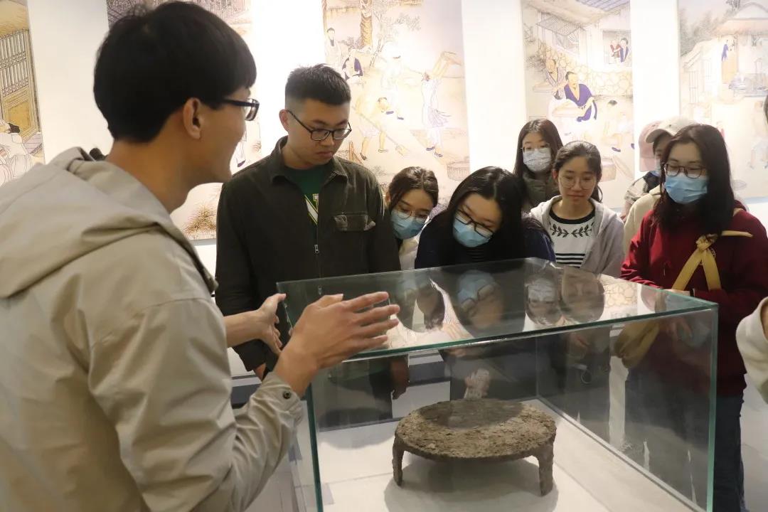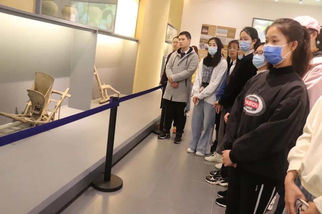 讲解员依次讲解了远古时期的碳化稻谷、清代大型龙骨水车等“镇馆之宝”,以及中国各地梯田地貌图、稻田种养示范图等,向同学们讲述农耕文化的发展演进和中国稻作的辉煌历史和灿烂文明。