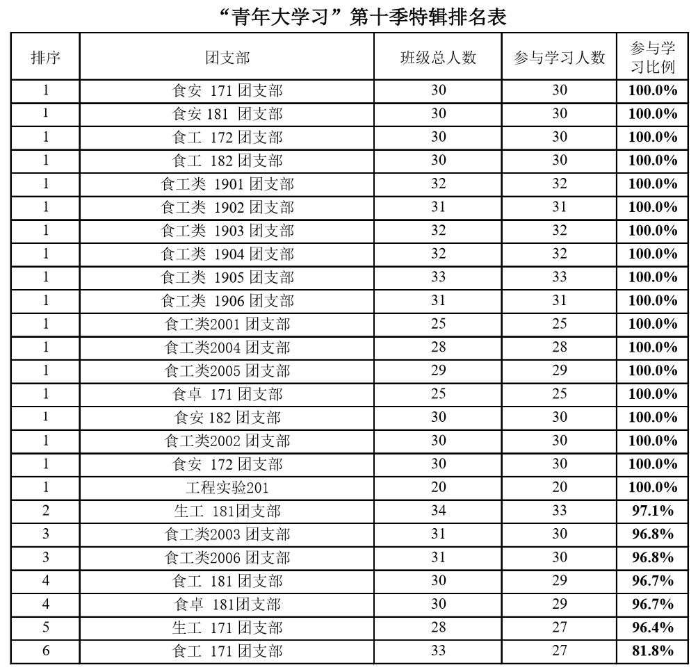 ”青年大学习”第十季特辑各支部学习排名表