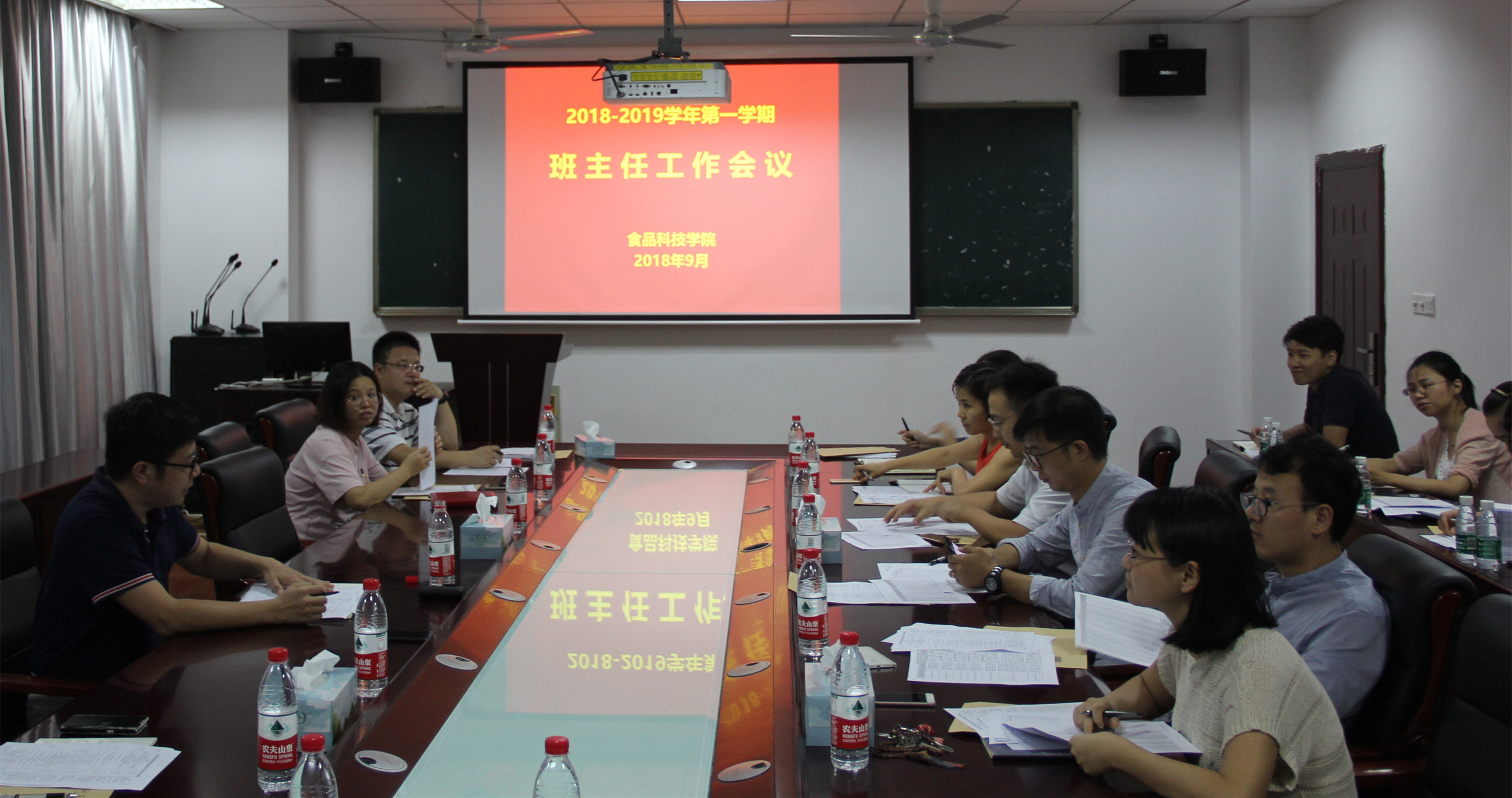 新学期班主任工作会议在食品楼220召开。院党委副书记丁广龙出席会议。本科生辅导员陈宏强、周凌蕾以及全体班主任参加会议。