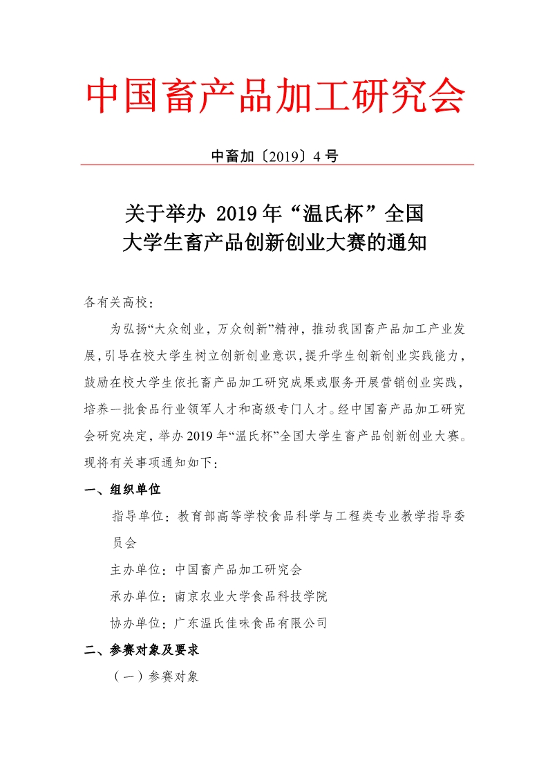 2019年“温氏杯”全国大学生畜产品创新创业大赛