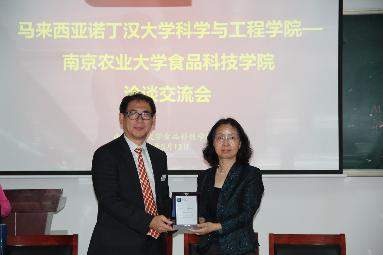 的基本情况。徐幸莲教授表示,马来西亚是我国“一带一路”倡议的重要合作伙伴,两国之间的友谊源远流长,双方可在食品加工、食品营养和安全、智能农业等方面深入加强合作,实现共同发展,为两国农业科技的创新做出贡献。陈德仪教授表示,马来西亚诺丁汉大学非常重视与中国大学之间的合作和交流,希望可以在教师与学生互访、联合培养博士、建立联合实验室等方面进行合作,增进两院之间的友谊,促进双方的共同发展。双方还就马来西亚特色农产品如燕窝、榴莲等的采摘和深加工进行了深入交流,并初步达成合作意向。