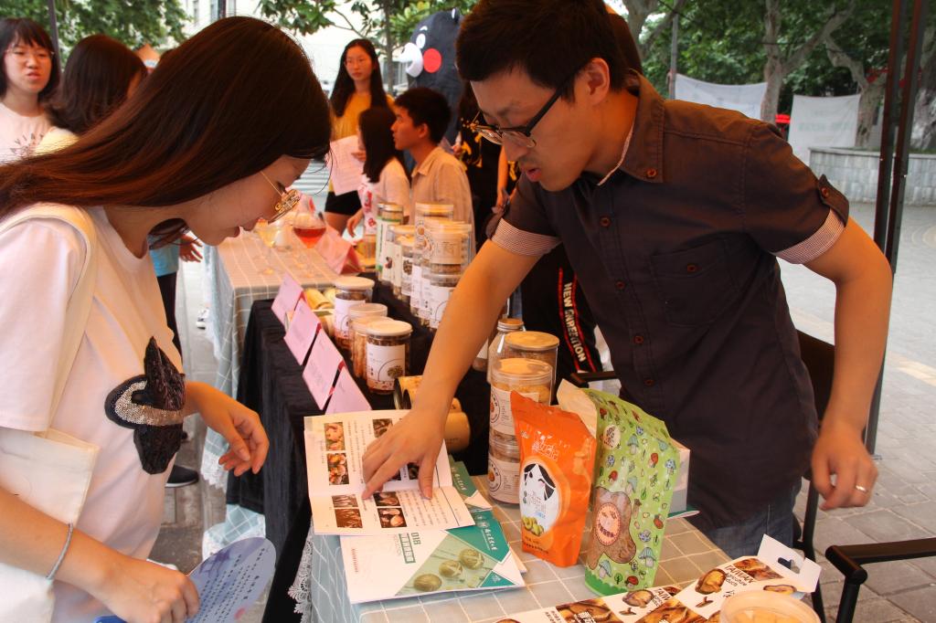 活动过程中,讲解员在玉兰路边摆放的展板旁对肉、酒、奶制品、食用菌的知识进行讲解,对公众关注的注水肉、注胶肉等做了详细解读,这类肉是往猪肉里人为添加水,卡拉胶、黄原胶等食用胶,严重危害健康;另介绍了辨别常见酒品、乳品的方法,并在帐篷内的产品展示区由工作人员展示蒸馏酒、发酵酒、配制酒等酒类,以及牛奶,酸奶,乳饮料等乳制品,在工作人员的讲解下,相信师生都掌握了一招鉴别的秘籍;食用菌是公众相对陌生的板块,讲解员从食用菌主食加工产品、食用菌休闲即食产品、食用菌风味调味品、食用菌功能产品四个部分进行讲解,在一旁的产品展示区也分别准备了相应的具有代表性的食品,如发芽糙米全营养棒,帮助师生进一步加深对此类产品的了解。