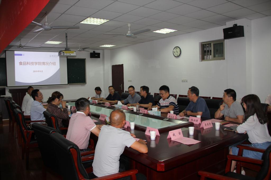 党委书记朱筱玉、副书记邵士昌、副院长金鹏、农产品加工教师党支部书记潘磊庆、韩永斌教授、陈志刚教授、杨润强副教授、李丹丹老师、办公室主任钱金等参与座谈与陪同考察。