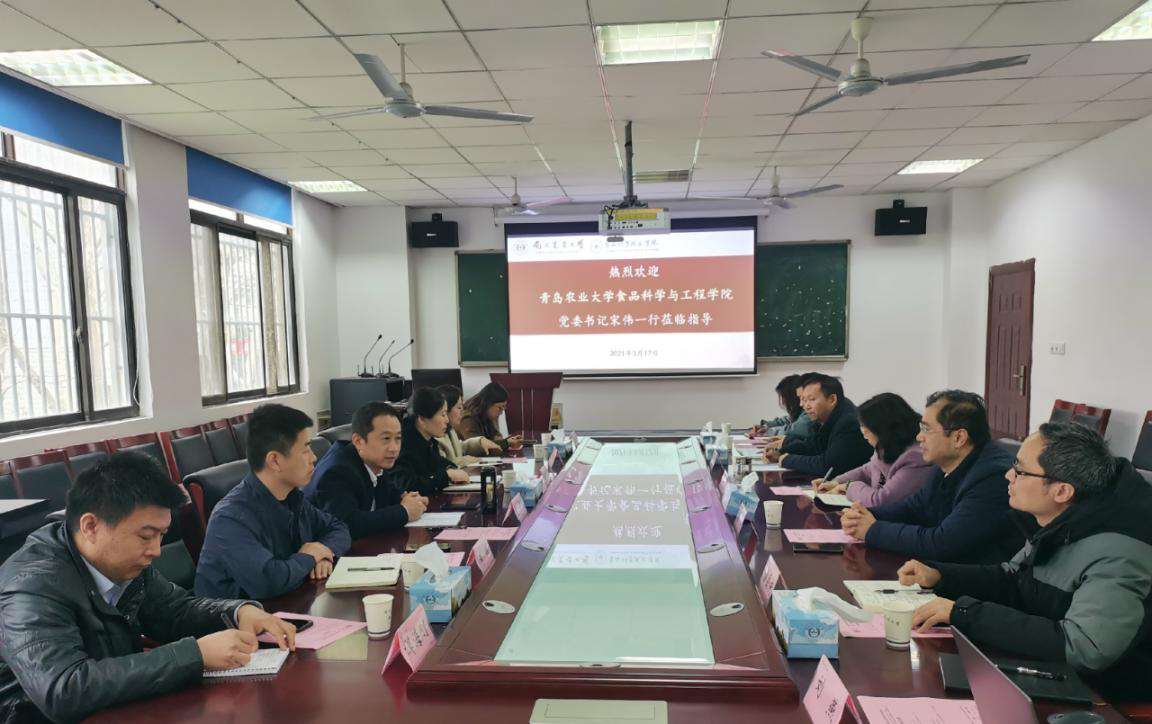 党委书记宋伟一行的到来表示了热烈的欢迎,徐幸莲院长就目前我院在学科建设、师资队伍、科学研究、人才培养等方面的情况进行了详细的介绍。辛志宏副院长介绍了基于全产业链需求导向的食品科学与工程类人才培养体系构建与探索。宋伟书记介绍了青岛农业大学食品科学与工程明星黑料