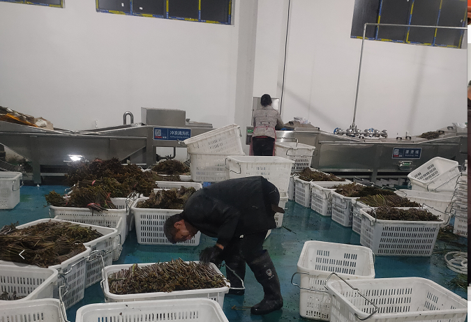 在蕨菜加工厂,郁志芳教授就蕨菜加工工艺流程、工艺操作要点对相关人员进行了现场培训。
