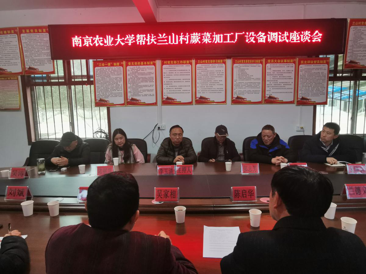 在兰山村委会,县委常委、副县长李玉清主持召开由南京农业大学专家、设备安装技术员、收购蕨菜厂家、县农业农村局、县市场监管局、县供销社、谷硐镇、兰山村两委人员组织的蕨菜加工设备调试座谈会,会议就利益联结机制、管理运营机制、包装设计、有机论证、项目申报、原料保障、食品质量、设备质量、安全保障、制度建设、生产许可、培训、产品销售、环保、管理、党建等进行商讨,确保有专人抓、专人管,让蕨菜加工真正落地见效,实现农业增效、农民增收。