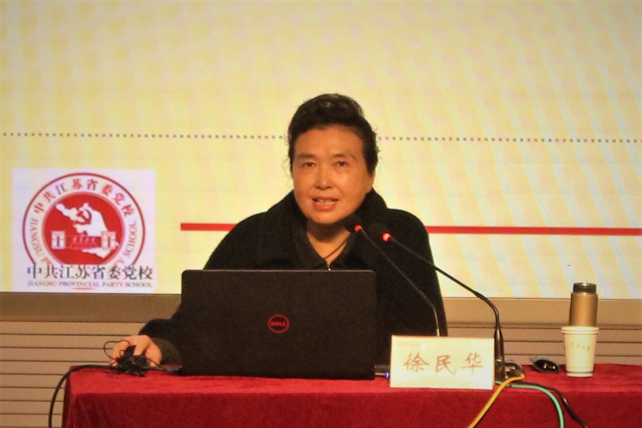 讲座开始前,全体人员默哀一分钟,沉痛悼念南京大屠杀遇难同胞。随后,徐民华教授以《改革开放40年与中国特色社会主义》为题,系统回顾了中国共产党的奋斗历程与中华民族的三次历史性飞跃,深入分析了习近平总书记在十九大报告中提出的“三个意味着”。她总结了改革开放40年与几代领导人对中国特色社会主义的艰辛探索和取得的成就,详细解读了十九大报告中的关于过去五年来取得的历史性成就和历史性变革,深刻阐述了改革开放40年的基本经验与中国特色社会主义的基本方略。徐民华指出,伟大的中国共产党走过“雄关漫道真如铁”的昨天,跨越“人间正道是沧桑”的今天,现在,以习近平同志为核心的党中央正引领当代中国向着“新时代”的“长风破浪会有时”的明天迈进。