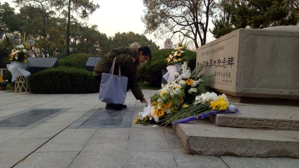 首先在南京静海寺纪念馆馆长苏真女士的倡议下,大家进行了一分钟默哀仪式,低头肃立,沉痛悼念。随后她为大家解读了《南京市国家公祭日保障条例》,介绍了《南京市国家公祭日保障条例》的来源,对侵华日军南京大屠杀遇难同胞重要丛葬地煤炭港、中山码头、挹江门、金陵船厂进行介绍,旨在引导学员们“铭记历史、勿忘国耻、以史为鉴、振兴中华”。最后,学员们前往挹江门丛葬地纪念碑,依次上前为英烈献上亲手叠好的纸花,寄托哀思。