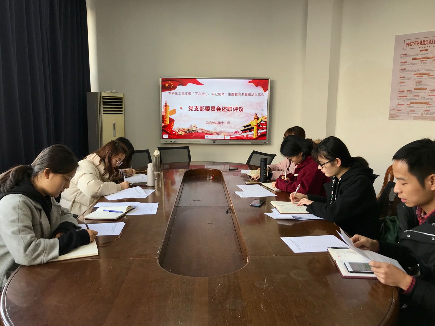 2019年12月4日,本科生工党支部召开“不忘初心、牢记使命”专题组织生活会。会议由李亚丽副书记主持。