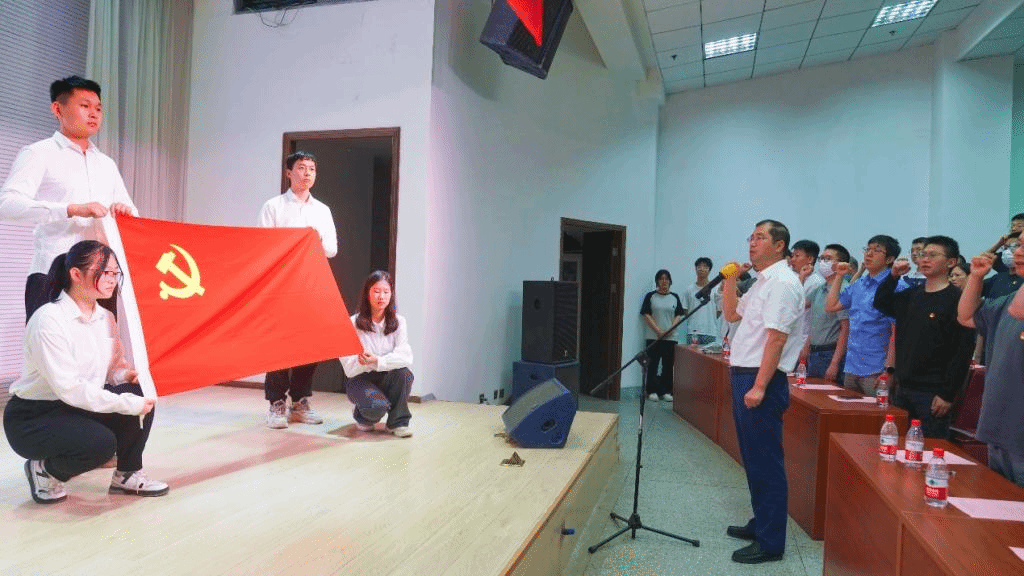 孙健带领全体师生党员重温入党誓词。进一步让师生党员,特别是毕业生党员们牢记誓词,开拓进取,争做表率,永葆共产党员的先进性和纯洁性,在新的人生起点,做一个能扛起新使命、谱写新篇章的新时代新青年。