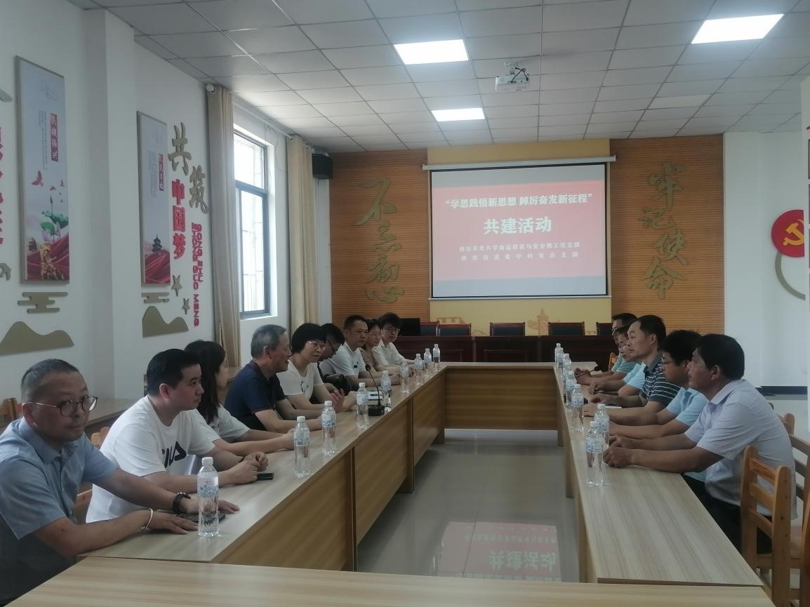 随后,与会党员进行了座谈交流,黄中村党总支书记王克介绍了黄中村的发展现状和未来规划,希望在乡村振兴方面与南京农业大学合作共建,南京农业大学食品质量与安全教工党支部各位老师表示,今后积极参与六合区的乡村振兴工作,践行杨崇元对党的忠心耿耿、对困难不屈不挠、对工作兢兢业业的精神,脚踏实地,为乡村食品安全保价护航,把科技成果在乡村振兴的主战场落地开花。