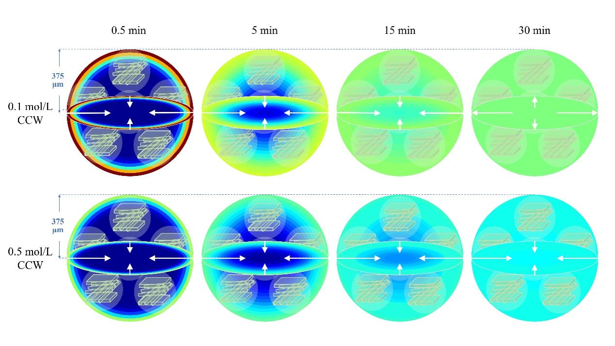 基于植物细胞壁与可溶性多酚间的非共价互作关系,本团队提出通过调控植物细胞壁与可溶性多酚间的互作行为,从而实现植物多酚的绿色分离。本研究首先对比了多种果蔬细胞壁组分吸附多酚的能力,发现芹菜和蓝莓细胞壁组分具有较强的吸附能力;进一步探究了不同环境离子强度下芹菜和蓝莓细胞壁组分与多酚互作的理化特性,并基于多孔扩散理论数值仿真了芹菜和蓝莓细胞壁吸附/解离多酚的物理过程;最后系统比较了植物细胞壁吸附/解离与传统大孔树脂吸附/解离技术在分离多酚方面的优劣。